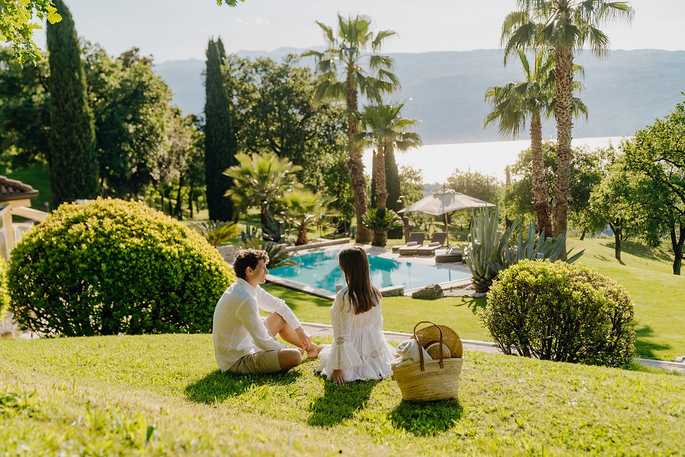 In bester Hanglage, 300 Höhenmeter über dem Gardasee, eingebettet in einen 30 000 qm großen natürlichen Privatpark, genießen Sie einen der schönsten Ausblicke auf den See in absoluter Privatsphäre.